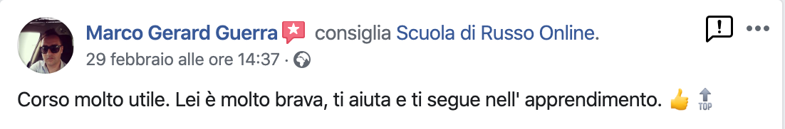 Studente del Percorso 1 to 1 di Scuola di Russo Online e di Accademia di Russo con Erika, avvocato della provincia di Bari.